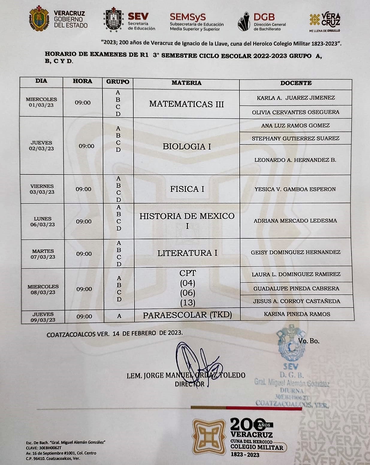 CALENDARIO DE EXÁMENES DE R1 -CICLO ESCOLAR 2022-2023